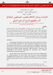 التزامات وسائل الإعلام لتجنيب الصحفيين المخاطر أثناء تغطيتهم للنزاع المسلح الدولي . الدكتور الداه سيدي محمد - مقالات العدد 31 من مجلة قراءات علمية - منشورات موقع الباحث العلمي - تقديم ذة حليمة عبد الرمى